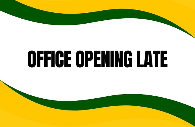 Our office will open late on Thursday, Feb. 12, for an all-employee meeting. Office hours will be 9:30 a.m. to 5 p.m. You can still make payments through our automated system or report outages by calling 800-677-2667.