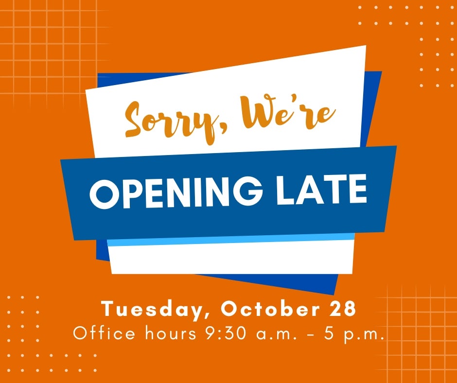 Our office will open late on Tuesday, Oct. 28, for an all-employee meeting. Office hours will be 9:30 a.m. to 5 p.m. You can still make payments through our automated system or report outages by calling 800-677-2667.